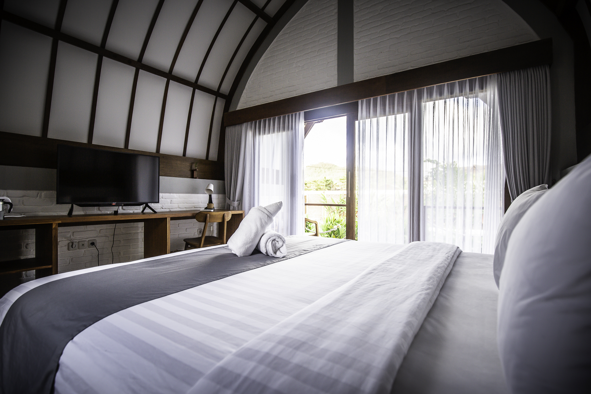 The traditional looking bungalows are fully equipped with your comfort and good rest as our main focus. This original roof shape, assembled with the most exquisite local wood, gives the name to our rooms: Lumbung (granary in Sasak). The goal during construction was for the hotel to blend in with the surrounding aesthetic, offering an organic and welcoming feeling to our guests.
